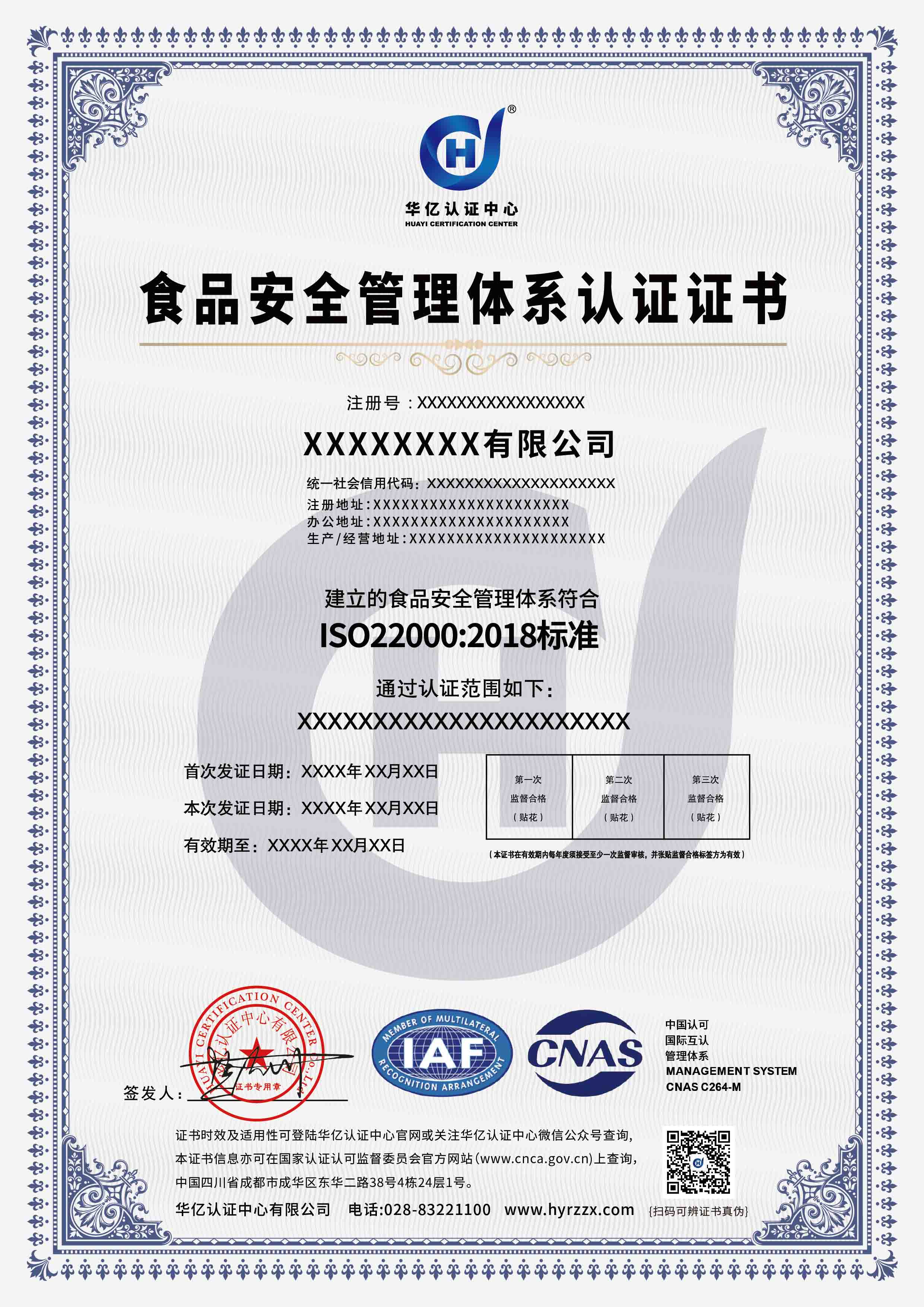 食品安全管理体系认证证书